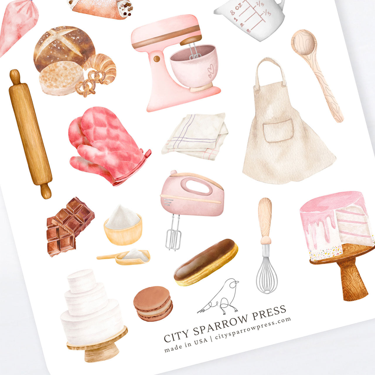 Add some sweetness to your planner, journal or scrapbook with this collection of baking stickers.