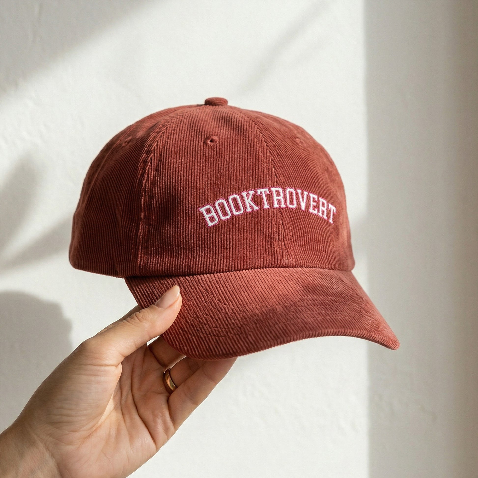 For the one who came to the party but is already thinking about going home to their book. The embroidered Booktrovert cap is a soft, vintage-style corduroy hat that says everything you need to say — without having to say a word to anyone 😉