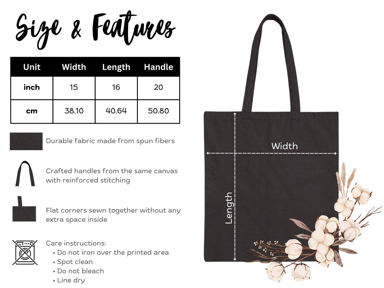 Perfect for trick-or-treaters and Halloween enthusiasts alike, this 100% cotton canvas bag comes in one size – 15" x 16”— great for everyday wear. It features 20" handles (made from the same canvas), making it easy to carry, even loaded down with candy!