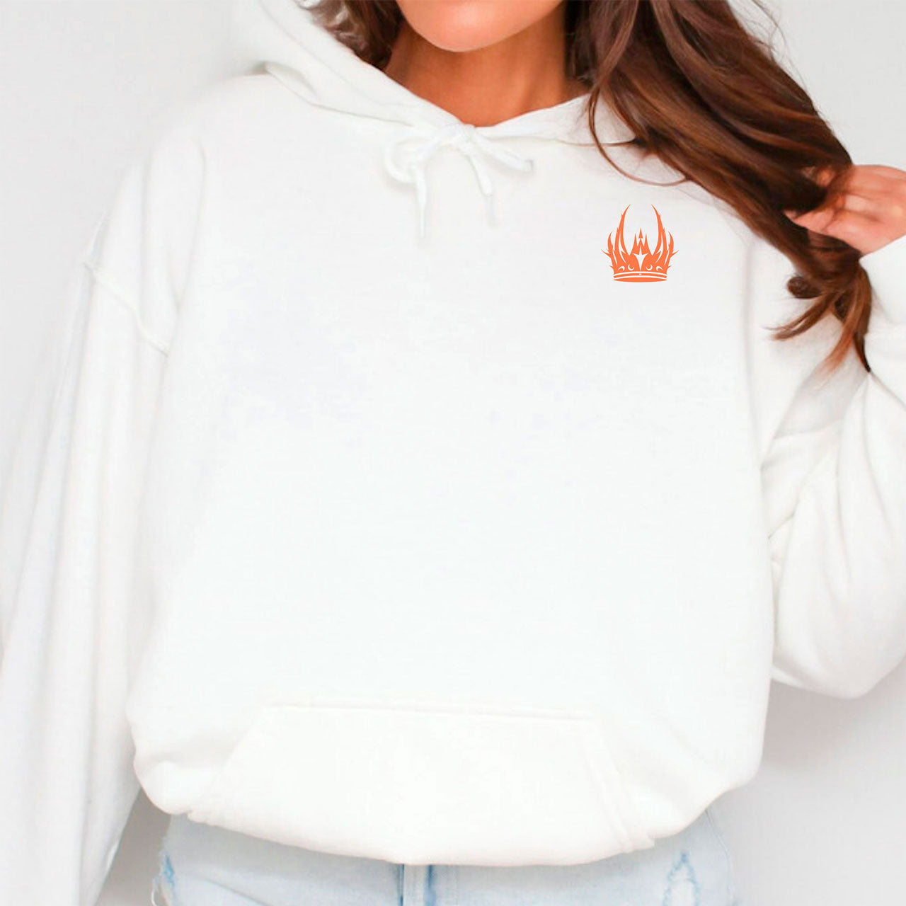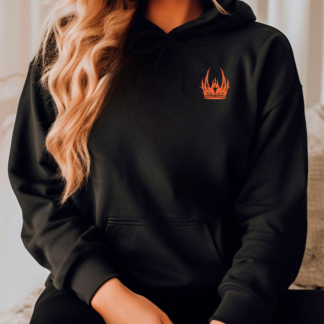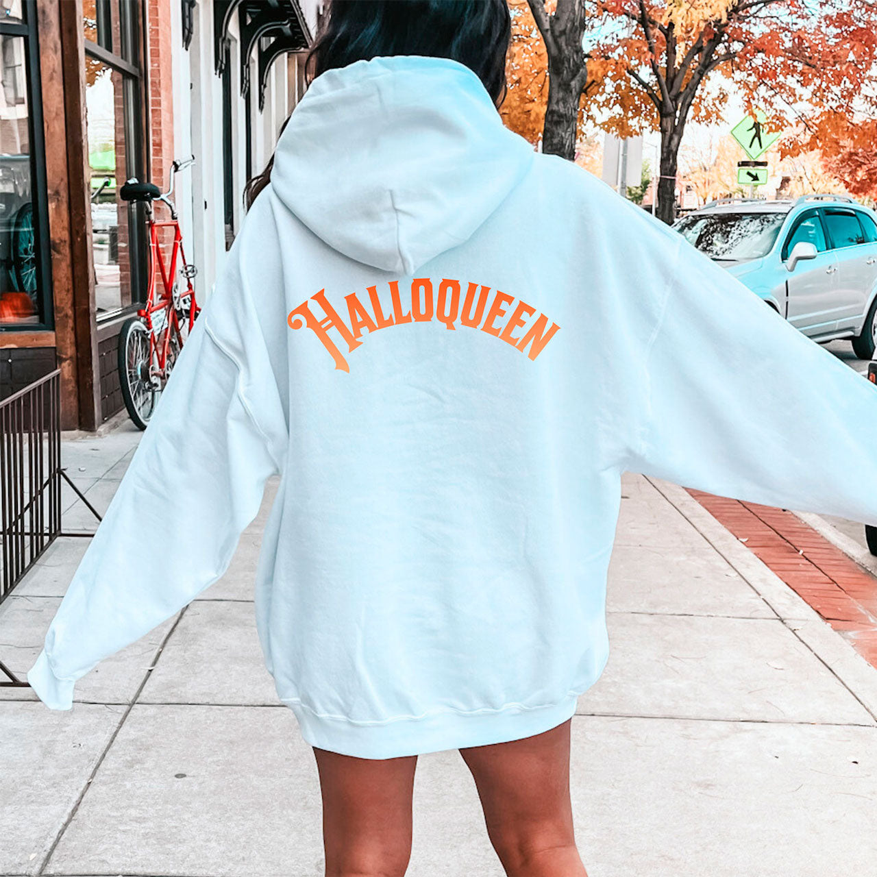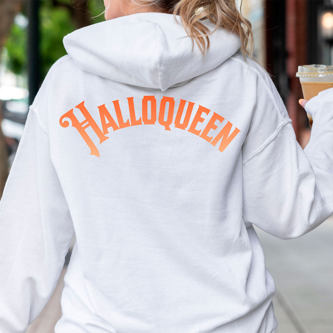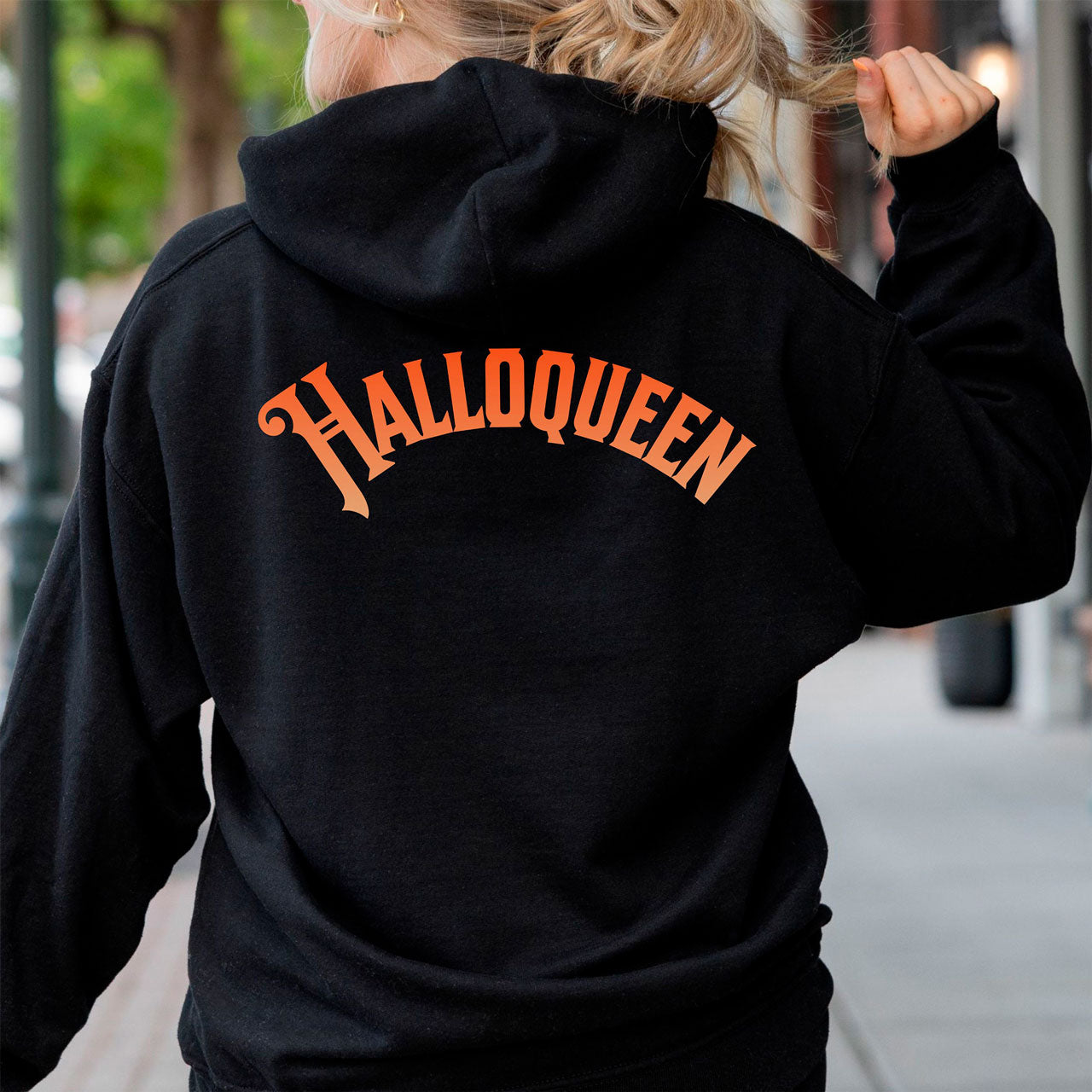 Rule the spooky season in regal style with our Halloqueen hoodie—perfect for those who reign supreme over Halloween festivities and want to do it with a touch of sinister glamour.