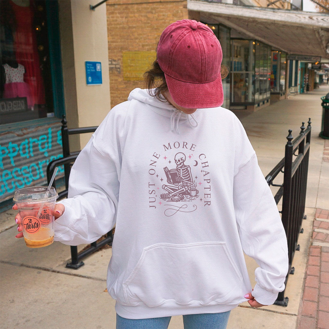 Our One More Chapter Hoodie Sweatshirt is the newest addition to our reader’s collection and is perfect for those nights when you're torn between the call of the Sandman and the lure of the next plot twist.