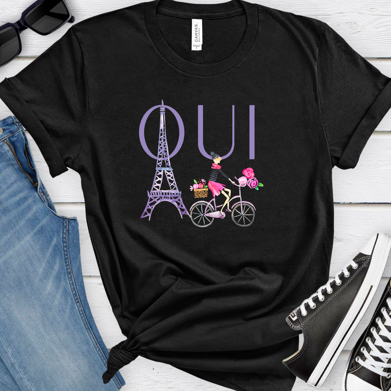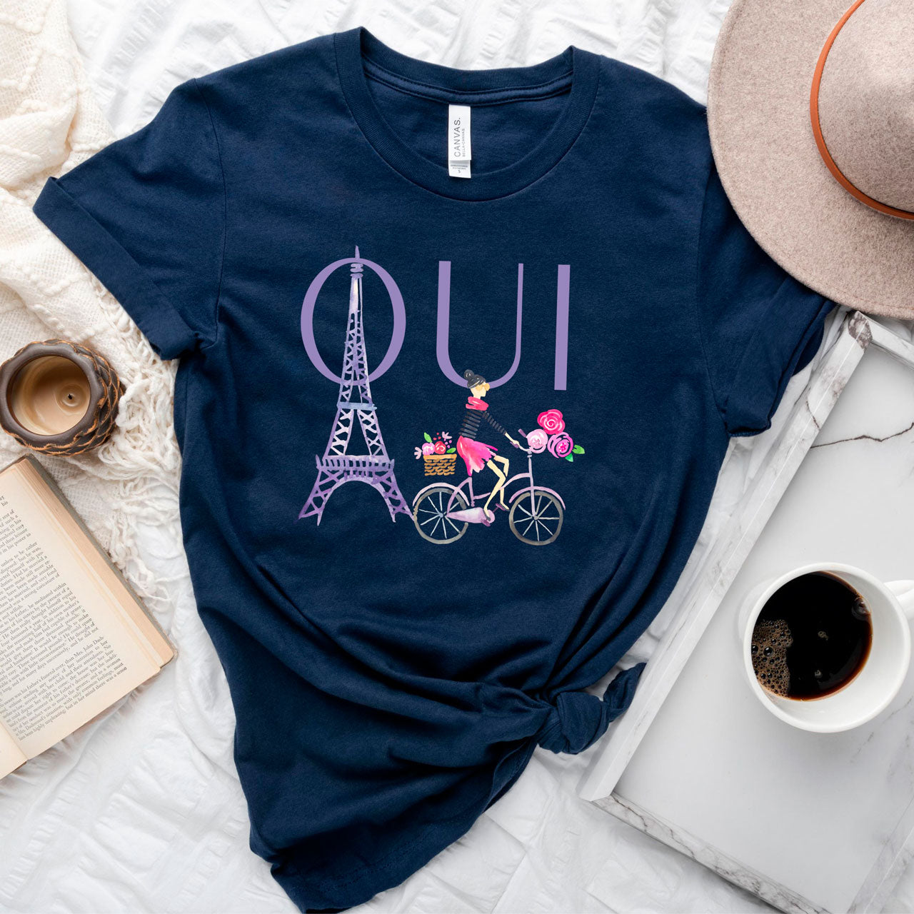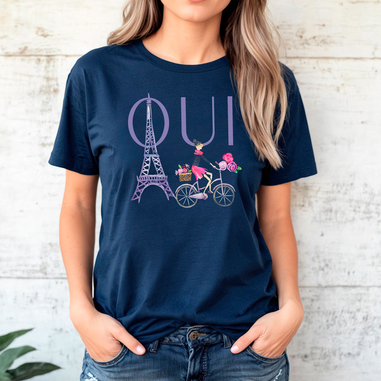 Say Oui to this whimsical ode to the City of Light. The playful design captures the essence of Parisian charm, making it the perfect addition to your wardrobe for those who adore the romance of Paris.