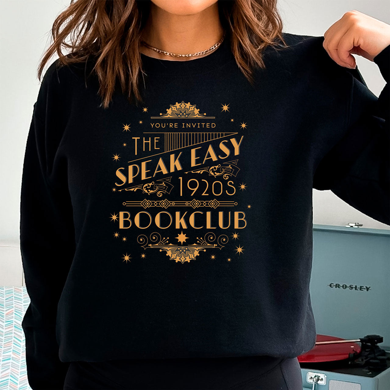 Add a dash of literary flair to your wardrobe with our Speakeasy Book Club sweatshirt, featuring a vintage-style font blending the charm of the Roaring Twenties with your passion for great reads.