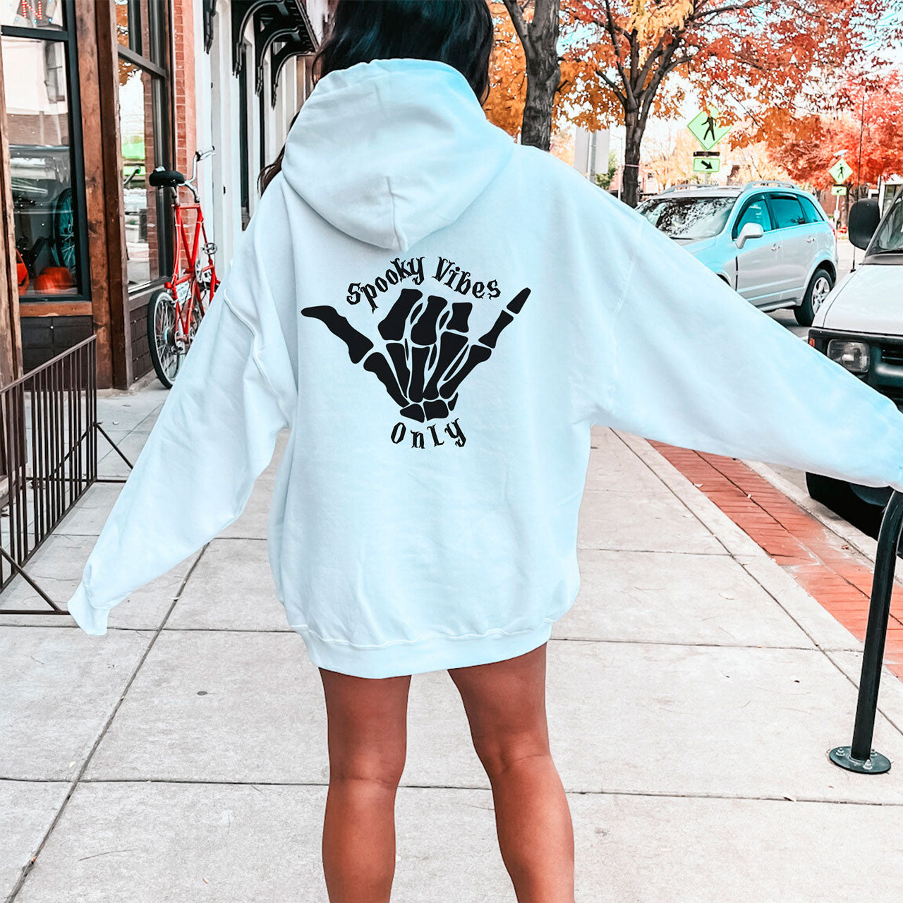 Embrace your spooky side with our "Spooky Vibes Only" hoodie, featuring a wickedly cool skeleton design. Perfect for those who love all things spooky, this hoodie is your ultimate companion for chilly nights, haunted houses, and every day that calls for a touch of the macabre.